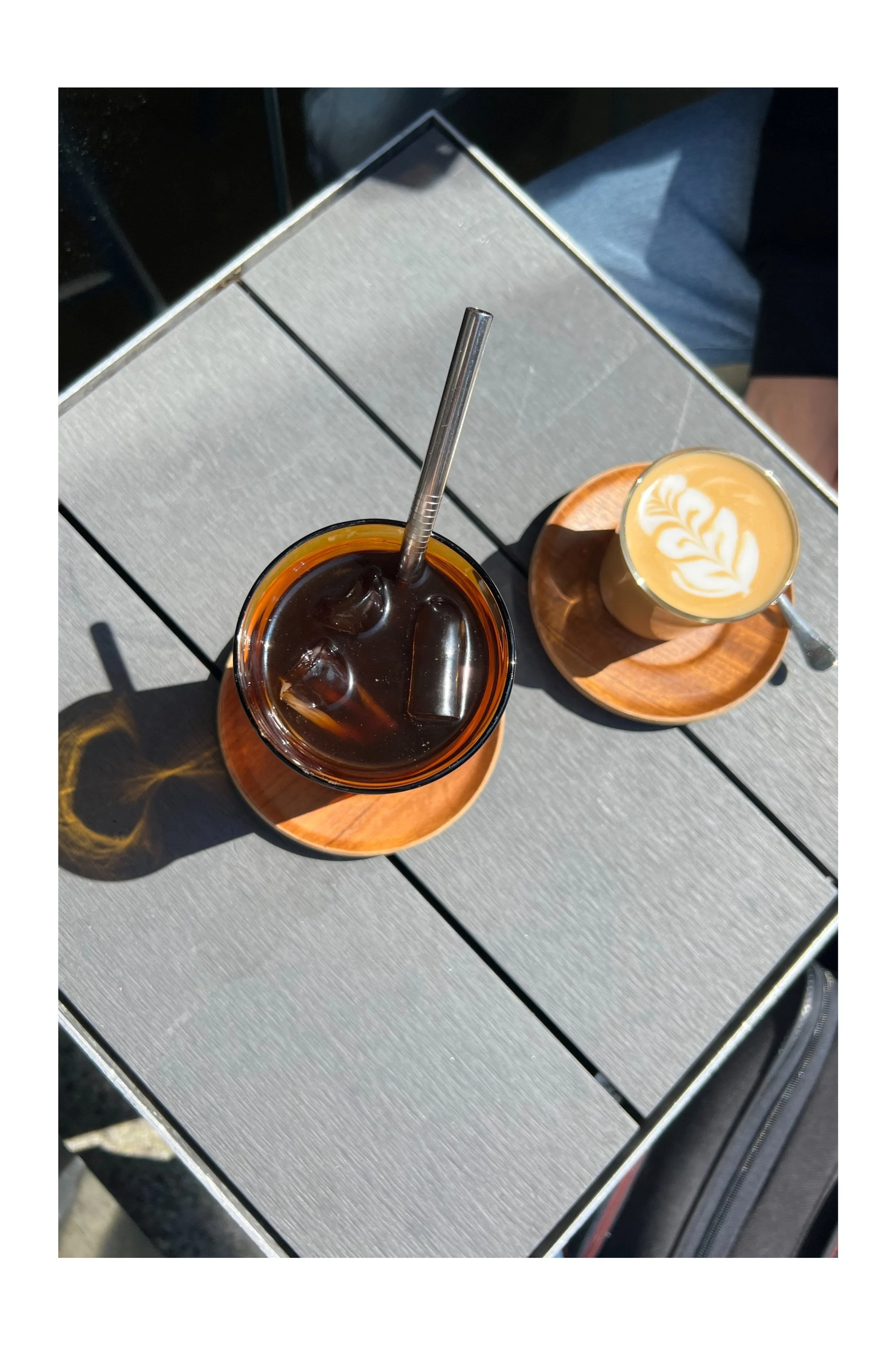 We stick to coffees and our choices are decisive. A cold brew filter for me, made with Fazenda Passeio, a single origin from Brazil. Tom went for a flat white with the washed Ilkito from Ethiopia. The barista details the flavour profiles of the different origins and we head back outside, heads heady with coffee lore. The coffees follow moments later as we’ve luckily arrived in a reprieve from the morning and lunchtime rush. Served in a Kin glassware cup, the ice cubes of the cold brew crackle as it is set down on the table. Tom’s flat white looks to be light in its roast and a smooth pour. We sip. The butterscotch notes carry through in the Brazilian cold brew, leaving a floral finish that lingers without being overly sweet. Balanced and light, it is a refreshing cup without a complex flavour profile. The flat white is indeed a light coffee, with a wash process on the bean allowing for a clean simple flavour. A citrus hint carries through. I could easily have had a second cup of each of the coffees.