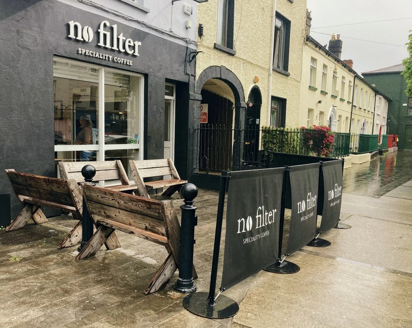 Clonmel is a funny sort of town, nestled between green hills and frequented by stormy skies. It is a web of medieval features and chippers. Old walls and town gates that lead to a slew of pubs and asian take-ways. It is perhaps not a town where one would expect to stumble upon a speciality coffee shop. Yet find yourself on Parnell Street in the early morning or at midday and you will notice an ever growing queue of people lined up to enter a narrow white building, the words No Filter emblazoned in black upon its front.