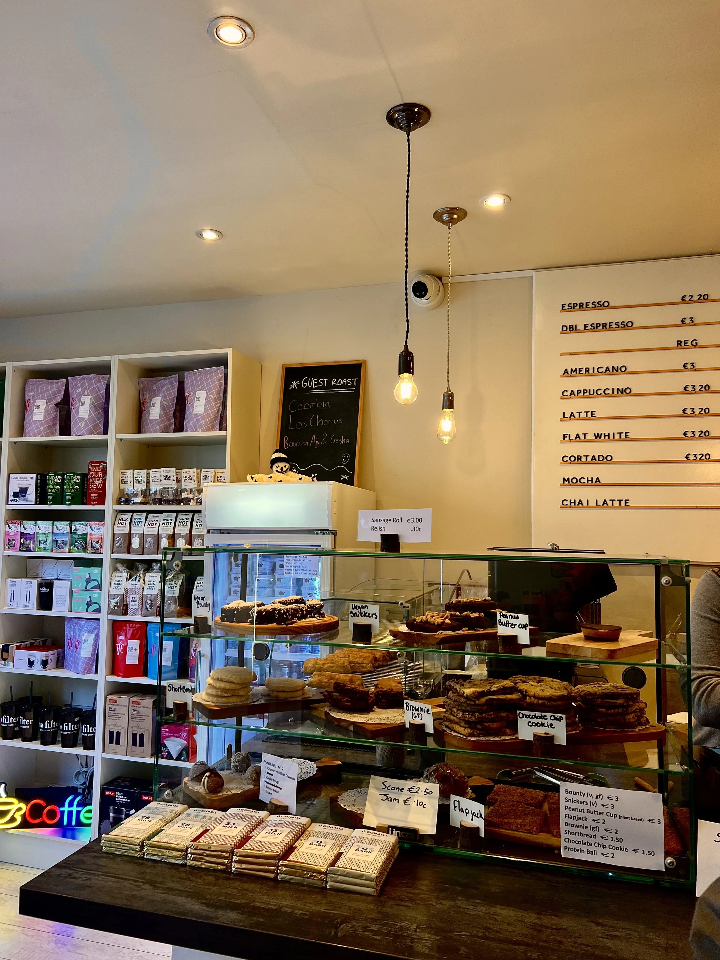 Established in December 2019 by Graham and Susan, the duo have gone from strength to strength with their speciality coffee shop, voted best coffee in Tipperary by TippFM in 2022. It was by happy chance that I stopped by while working in Clonmel for two weeks. Having been disappointed by other cafes in the area and feeling a little lacklustre in the early morning, it was with some hesitancy that I called in to order a flat white. Entering into the small space there was a friendly bustle and a warm atmosphere as locals greet each other and staff sling out orders from memory. Tall shelves lined the walls before me, filled with colourful bags of beans, coffee gadgets and branded travel mugs.